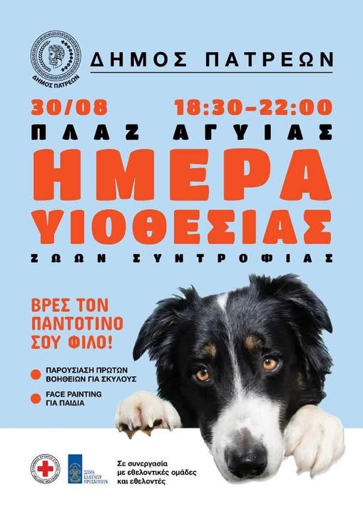 ΗΜΕΡΑ ΥΙΟΘΕΣΙΑΣ ΖΩΩΝ ΣΥΝΤΡΟΦΙΑΣ ΑΠΟ ΤΟΝ ΔΗΜΟ ΠΑΤΡΕΩΝ, ΣΤΗΝ ΠΛΑΖ ΤΗΣ ΑΓΥΙΑΣ ΤΟ ΣΑΒΒΑΤΟ 30 ΑΥΓΟΥΣΤΟΥ