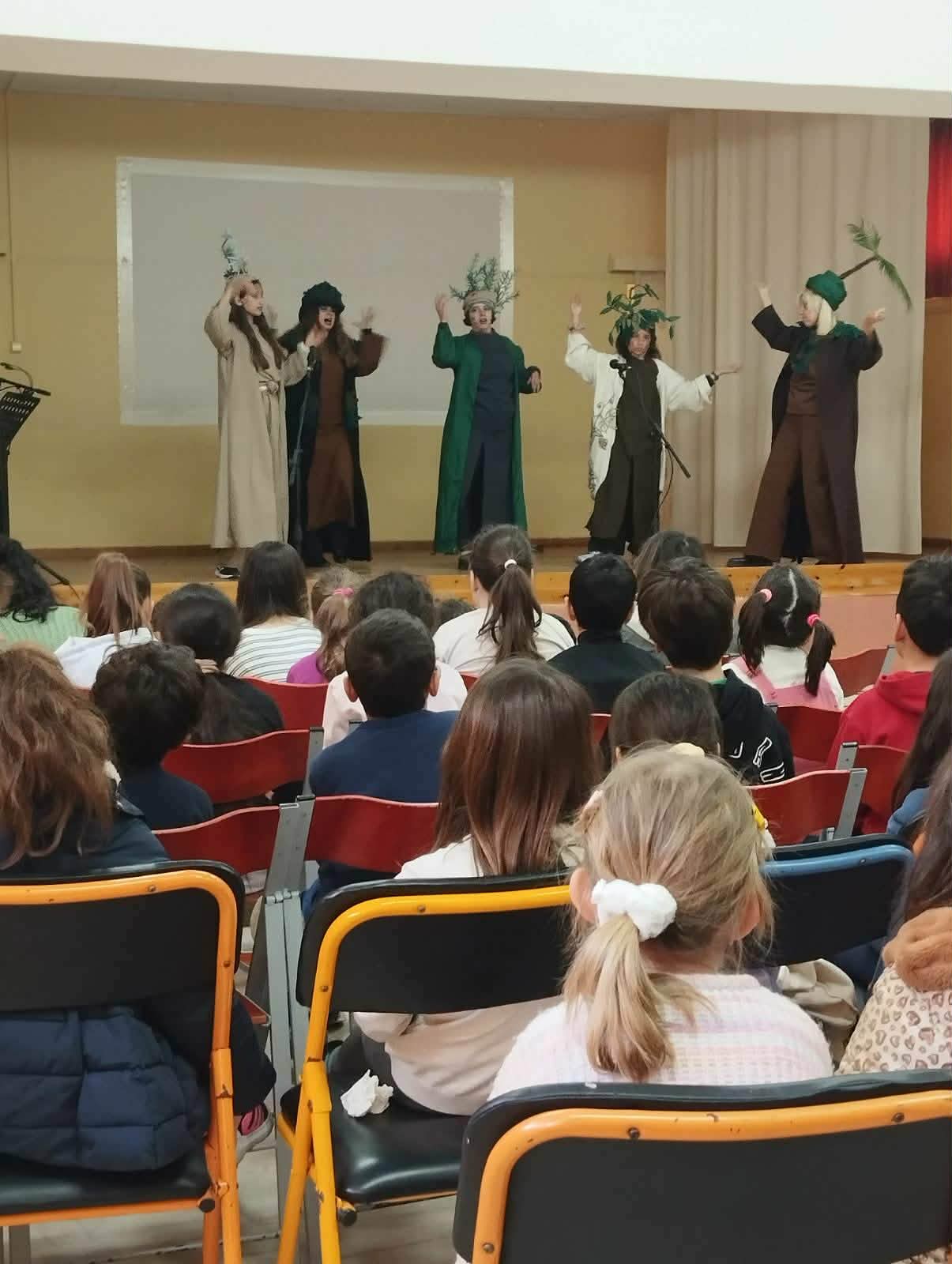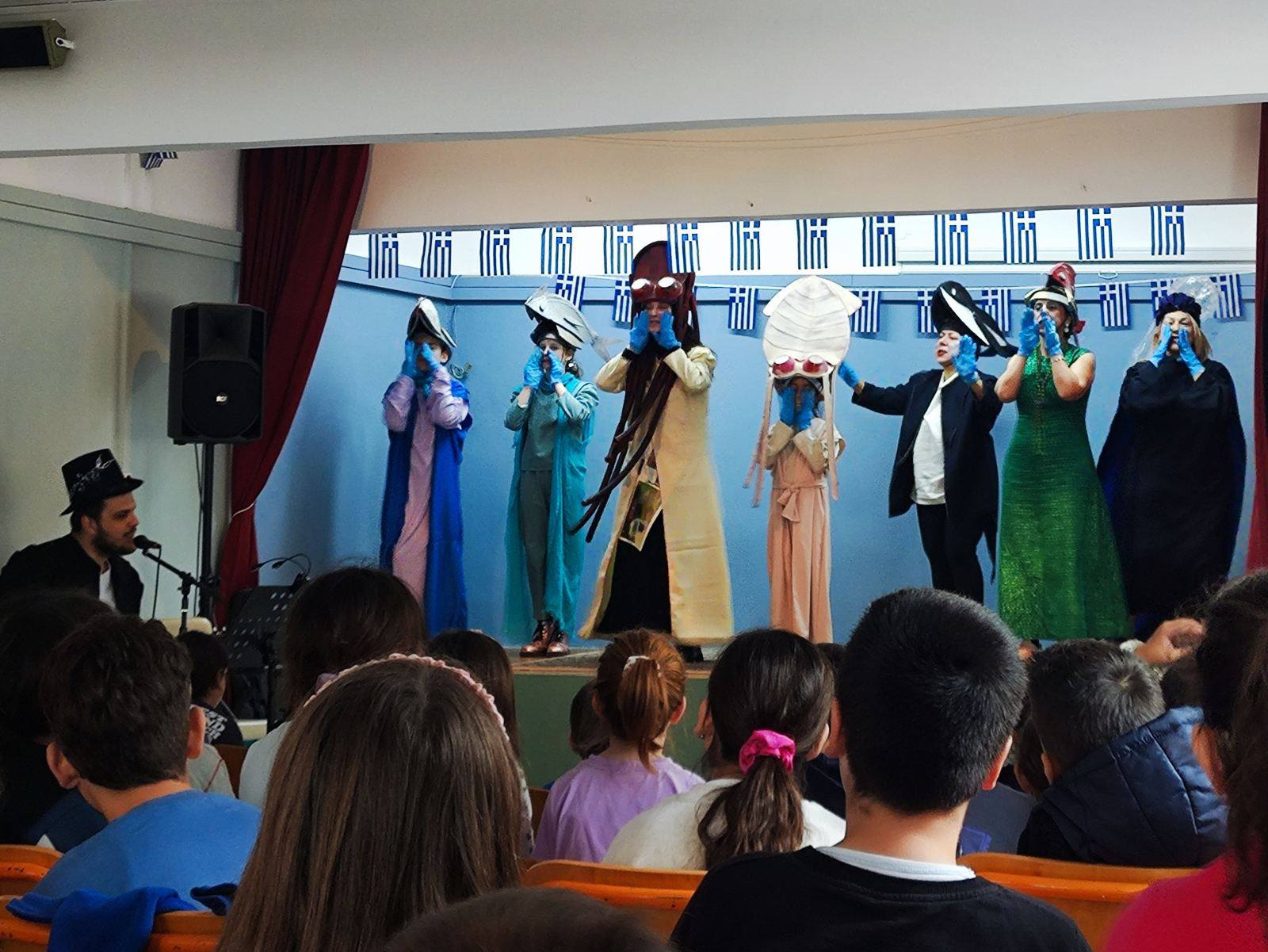 Σε 230 μαθητές και μαθήτριες, του 15ου, 19ου, 76ου Νηπιαγωγείου και 2ου και 23ου Δημοτικού σχολείου του Δήμου μας, παρουσίασε το Θεατρικό Εργαστήρι Πολυφωνικής -σε συνεργασία με την Αντιδημαρχία Αθλητισμού, Περιβάλλοντος, Ενέργειας και Πρασίνου και υπό την αιγίδα της Αντιδημαρχίας Παιδείας- δωρεάν την παιδική παράσταση: «Σε τρελό πανικό! Δένδρα-Ψάρια χτυπούν συναγερμό», την Πέμπτη 26 Μαρτίου.