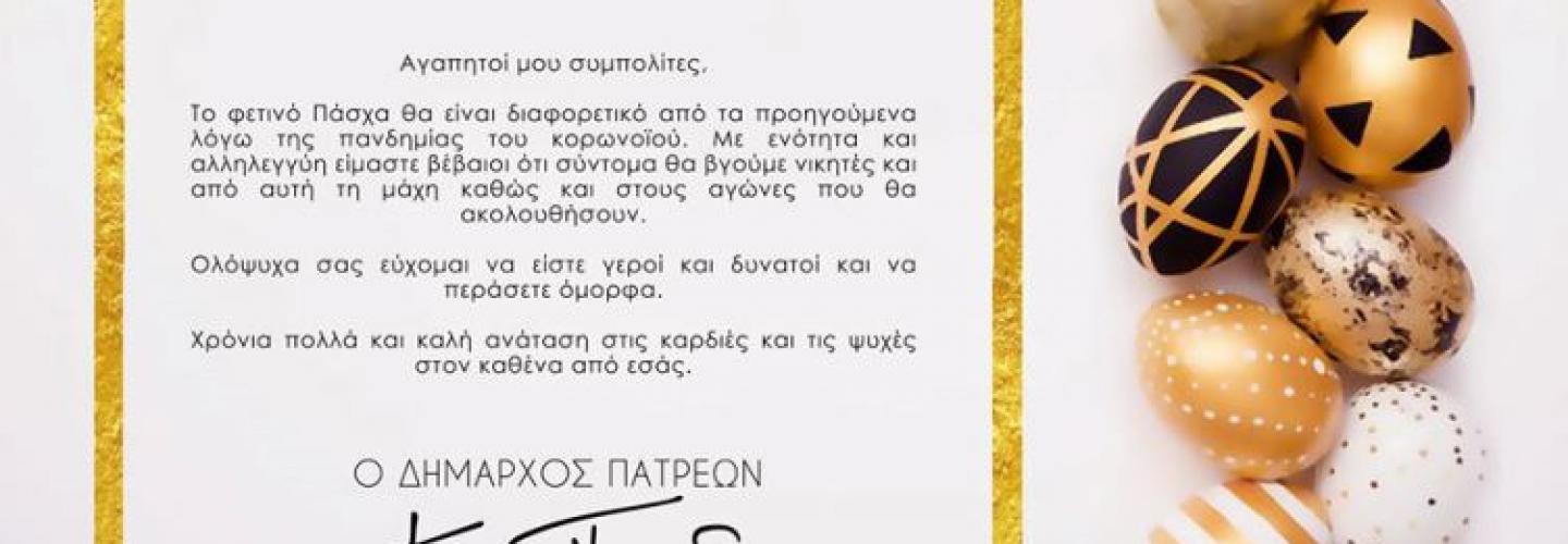 Επικαιρότητα Πασχαλινές ευχές Δημάρχου Πατρέων, Κώστα Πελετίδη, για ανάταση ψυχής και καρδιάς! 16/04/2020