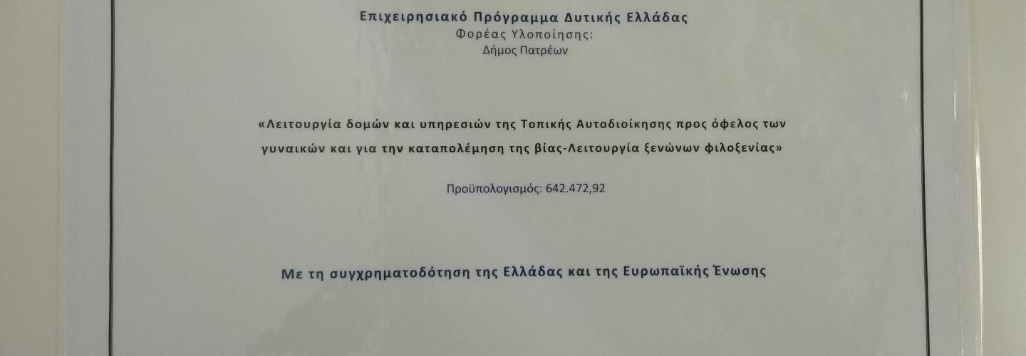 Συγχρ/να Έργα Λειτουργία δομών και υπηρεσιών της Τοπικής Αυτοδιοίκησης προς όφελος των γυναικών και για την καταπολέμηση της βίας - Λειτουργία ξενώνων φιλοξενίας 25/09/2018