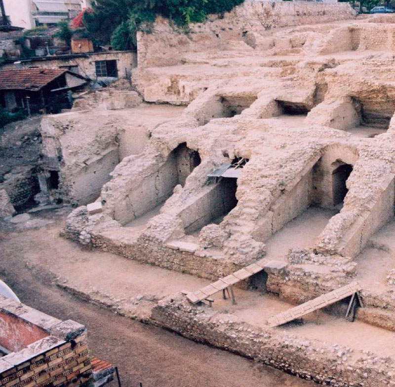Κοντά στο Αρχαίο Ωδείο ήρθαν στο φως ερείπια αμφιθεάτρου πιθανόν του 1ου μ.Χ αιώνα. Μαζί με το γειτονικό Αρχαίο Ωδείο θα αποτελέσουν ένα ενιαίο σύνολο μεγάλης αρχαιολογικής αξίας. Σήμερα ένα μεγάλο τμήμα της περιοχής του αρχαιολογικού χώρου ανασκάπτεται, ανάμεσα στις οδούς Παντανάσσης, Ηφαίστου και Γεροκωστόπουλου.